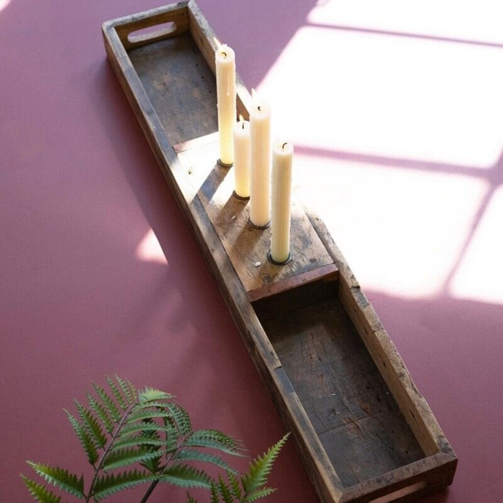 Recycled Wooden Tray + Four Taper Candle Holders