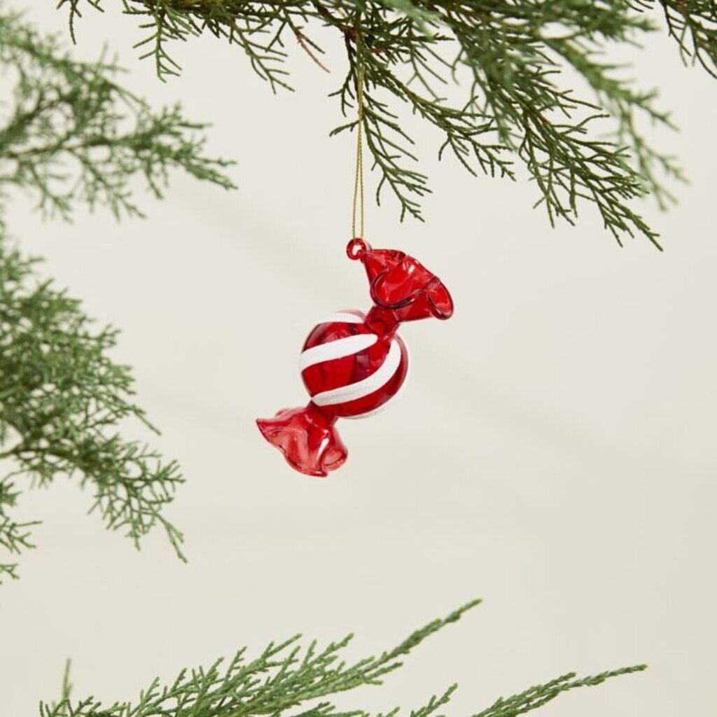 Vintage Inspired Small Glass Red Peppermint Ornament
