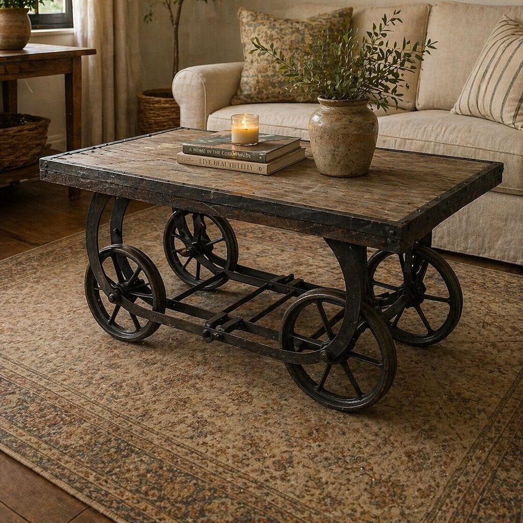 White Washed Carved Wood Table