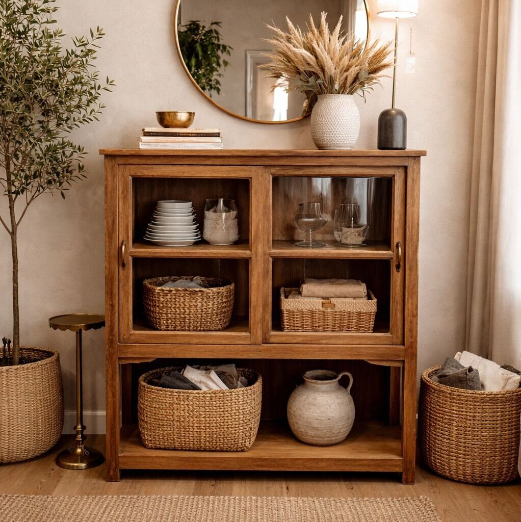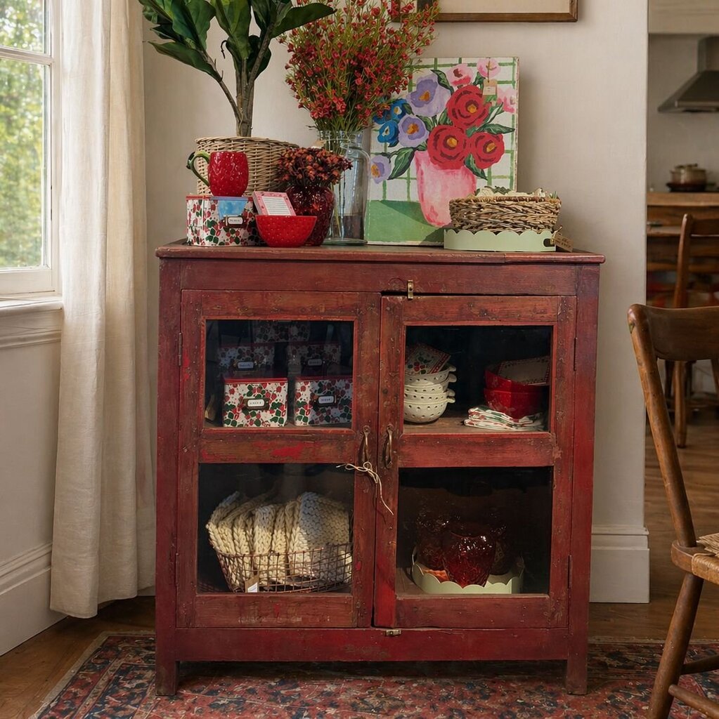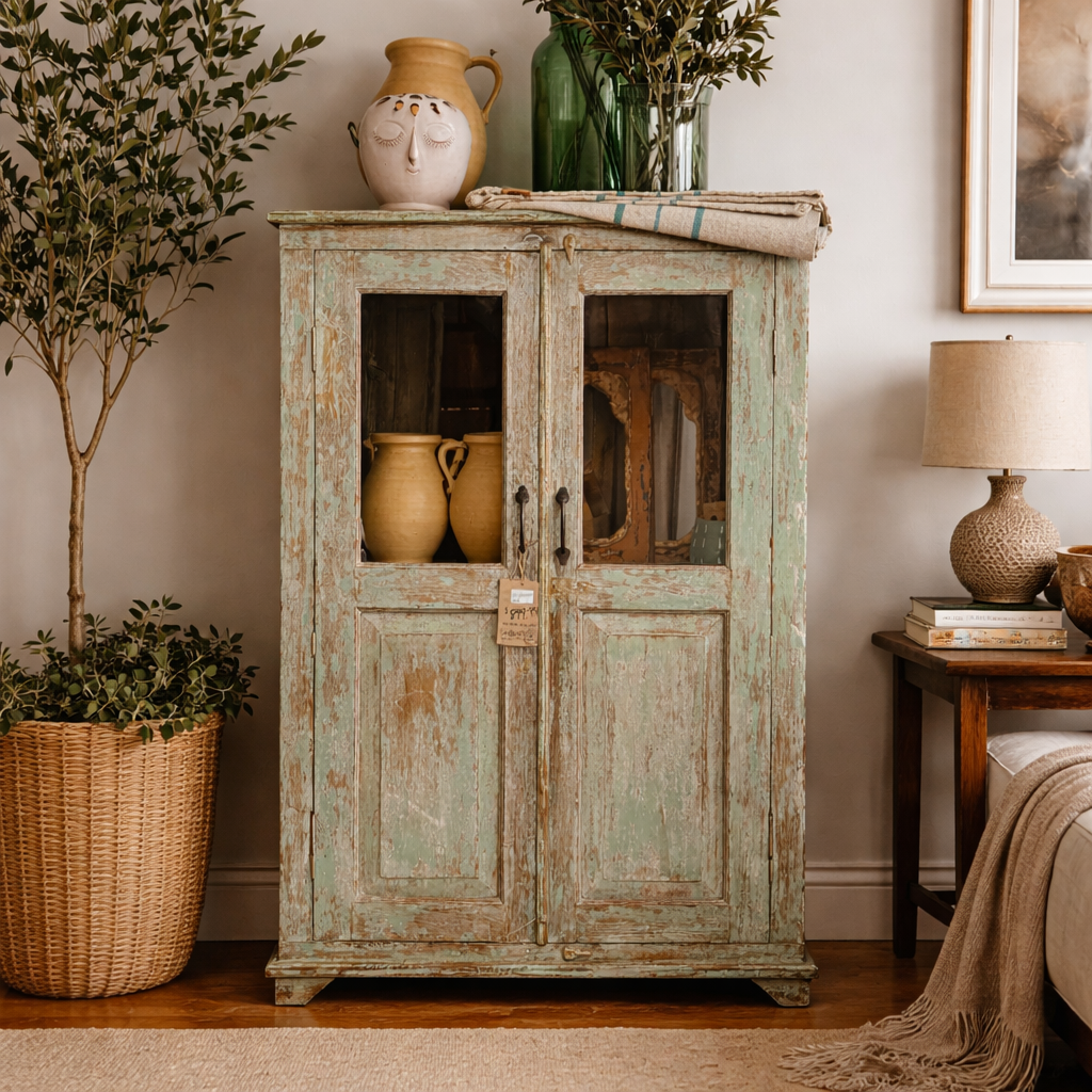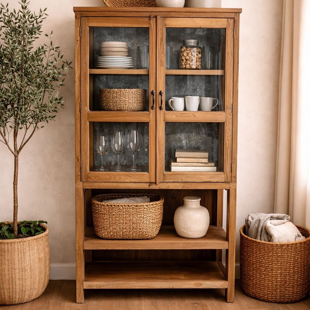 Wooden 2 Glass Door w/ 1 Drawer Cabinet