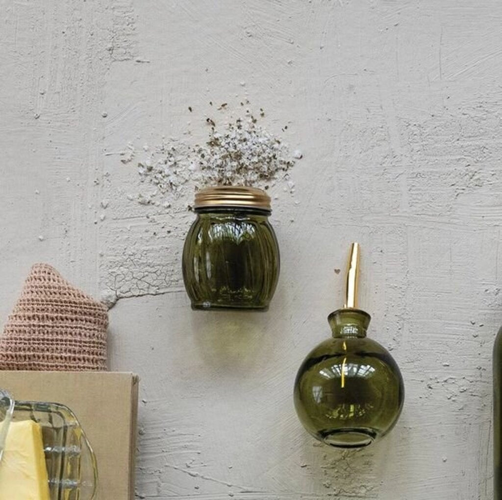 Olive Color Glass Cheese/ Spice Shaker
