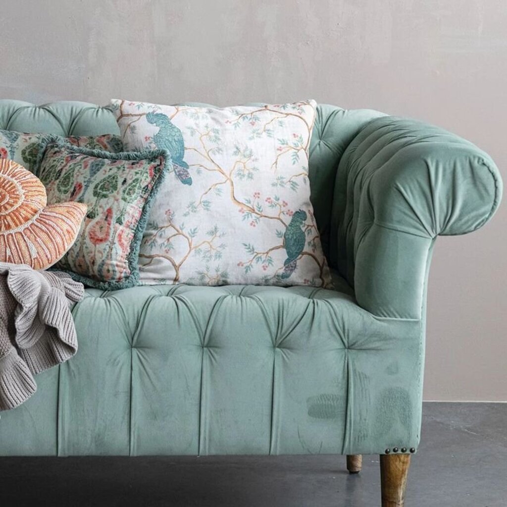 Cotton Velvet Pillow w/ Vintage Carpet Pattern