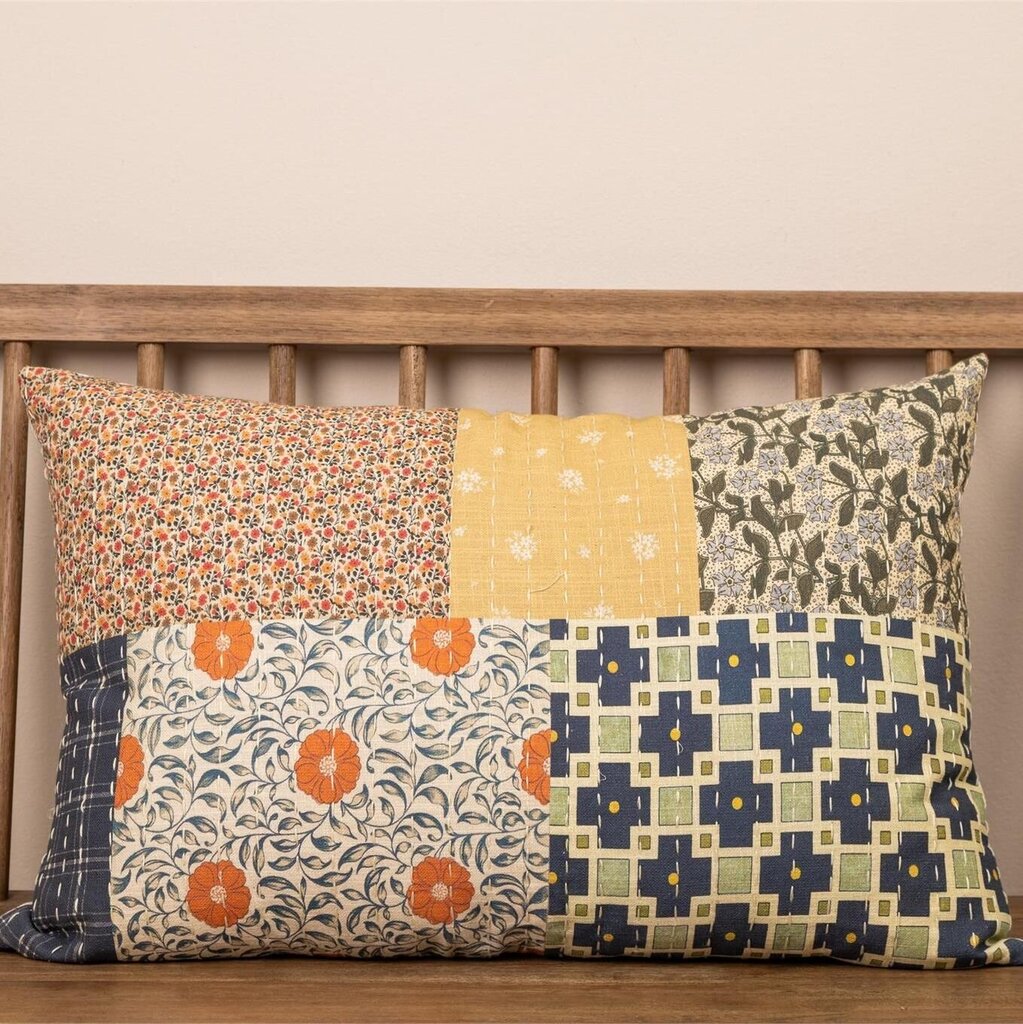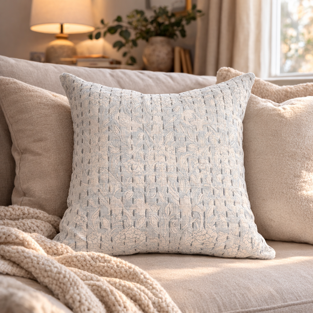 Woven Cotton Lumber Pillow + Kantha Stitch Flowers