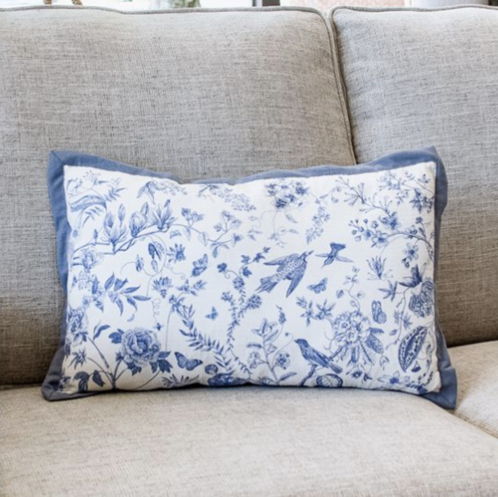 Charming Blue Floral Cotton Blend Pillow- 18"