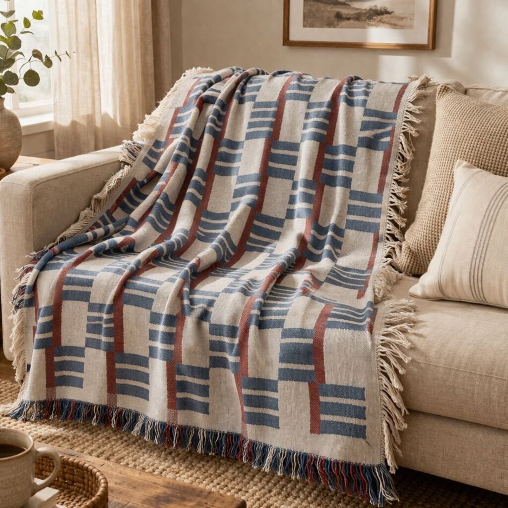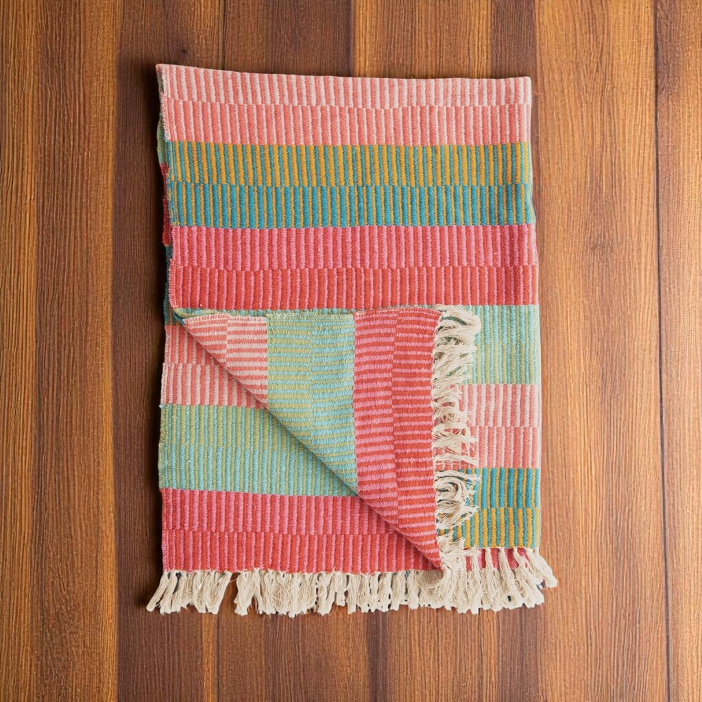 Beautiful Cotton Stripe/ Block Pattern Throw
