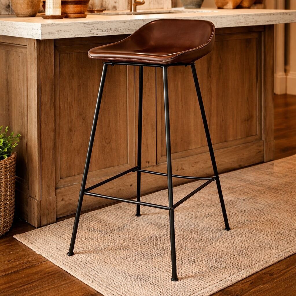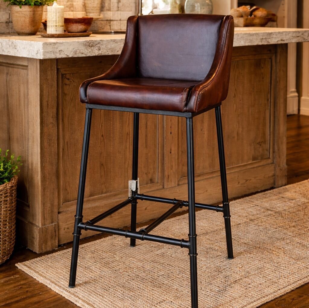 Beautiful Dark Leather & Iron Chair/Bar Stool