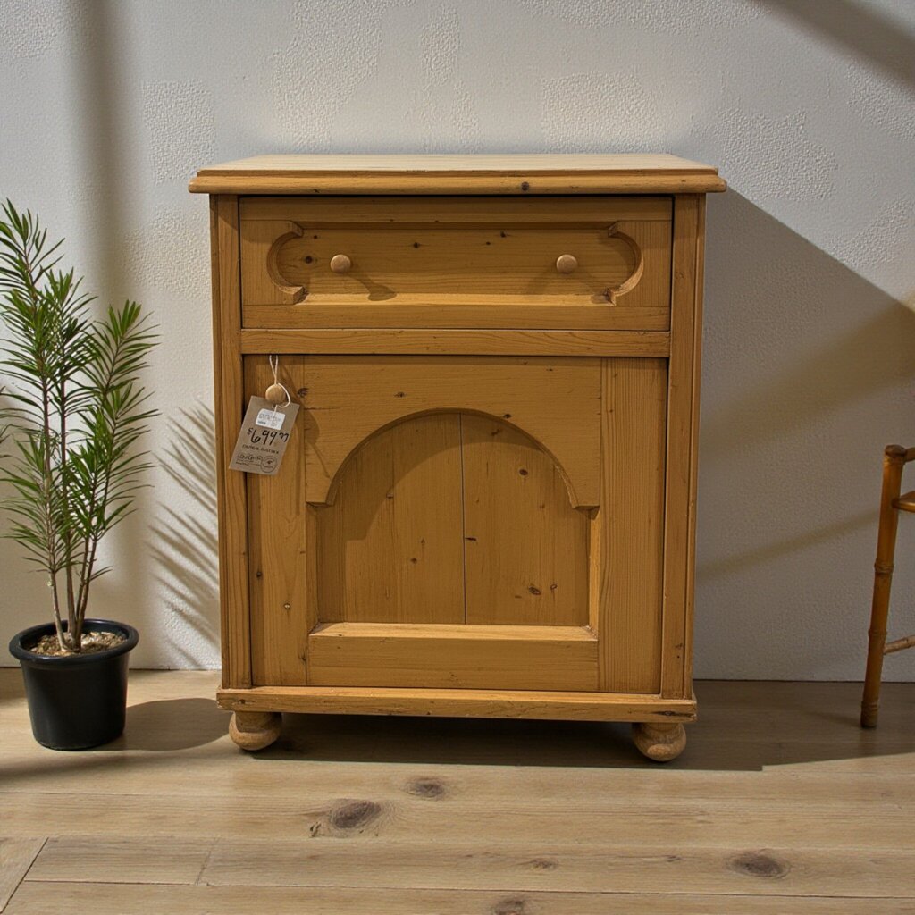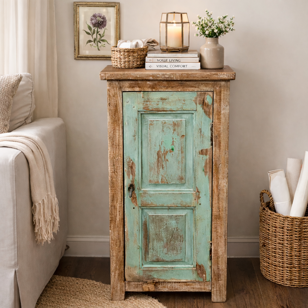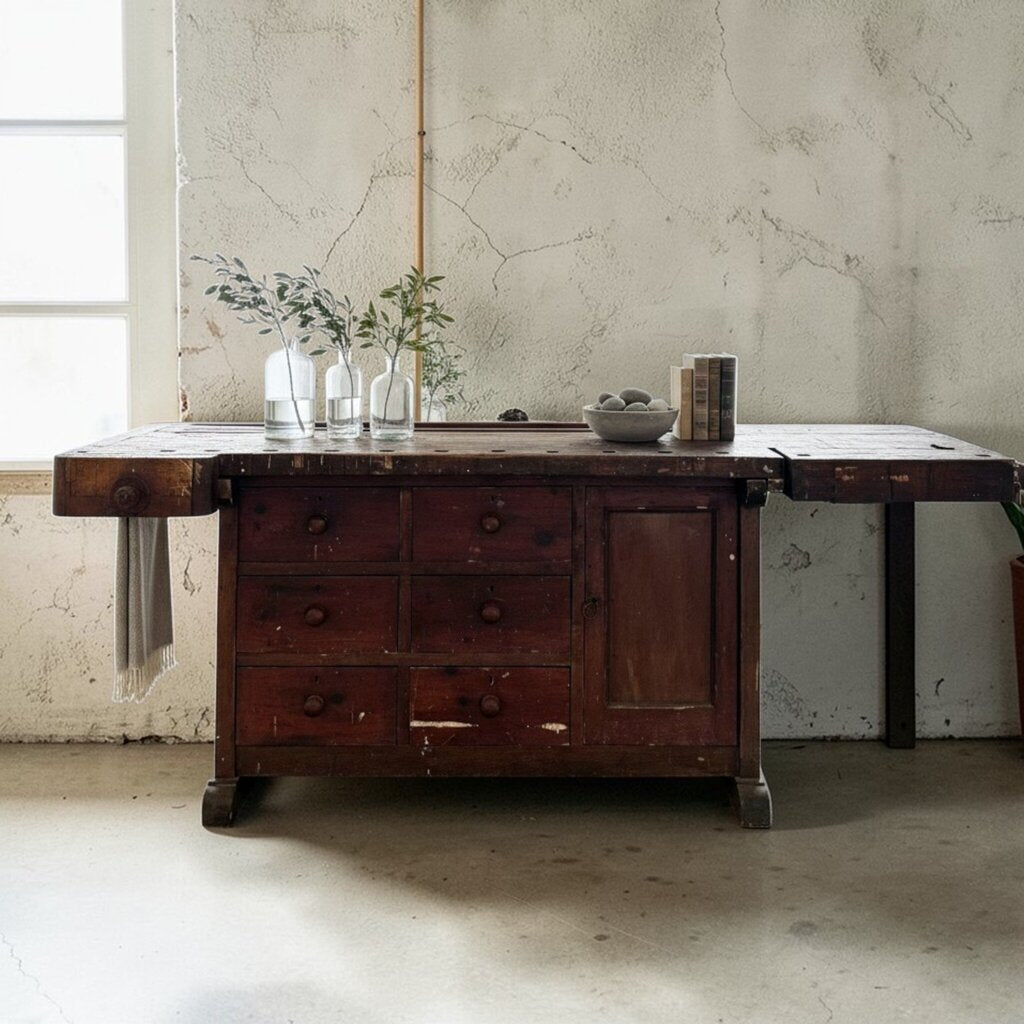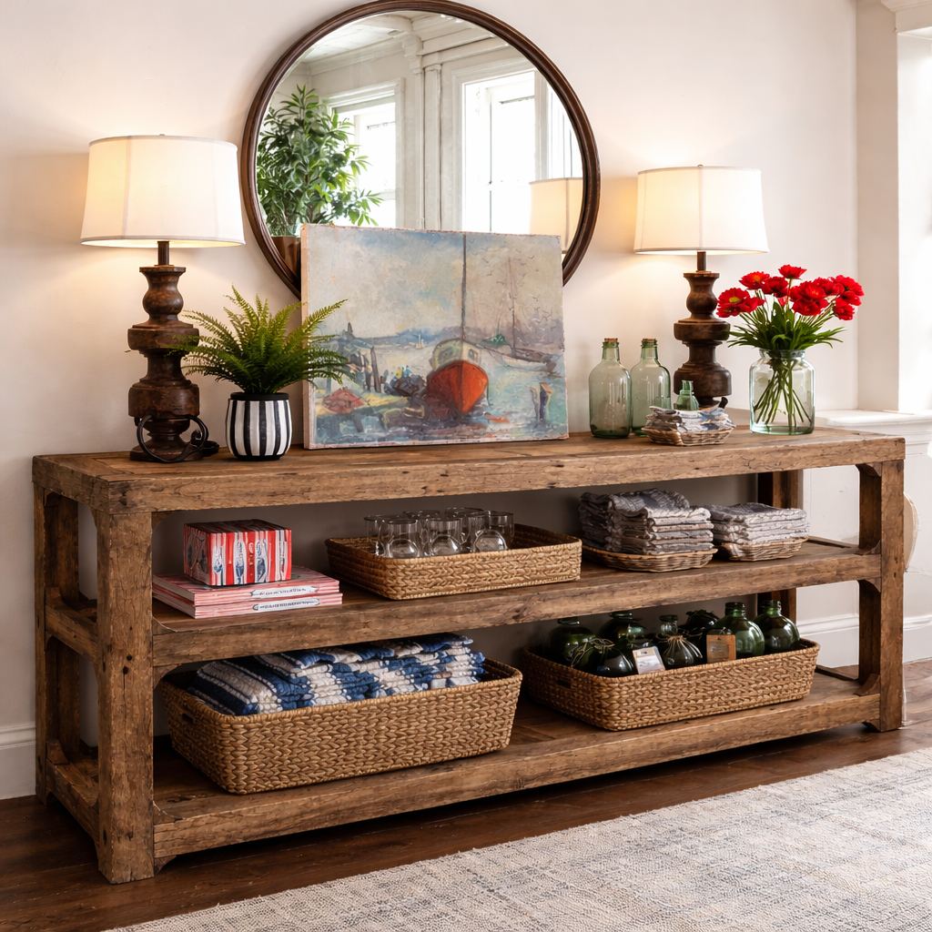 Wooden & Green Metal Console Table