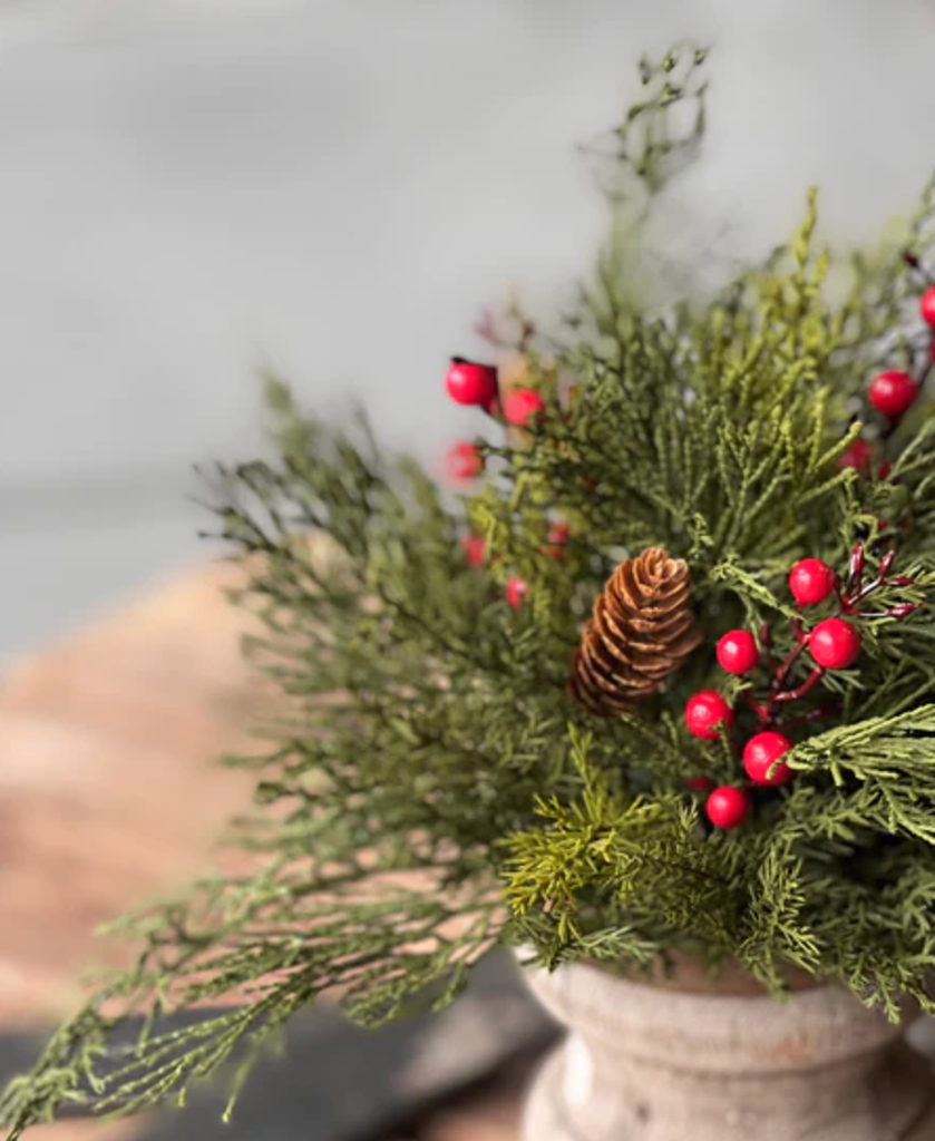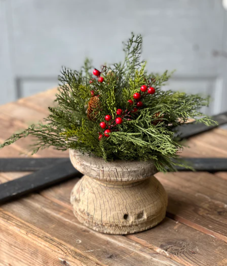 Featuring a beautiful pairing of cedar, red berries & pinecones, this half sphere will be the perfect addition to any space.