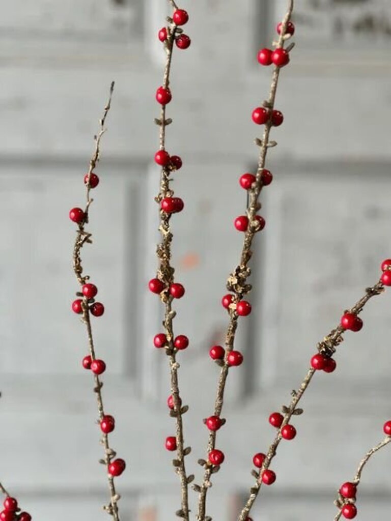 Tall branching stems with unique bark like accents are topped with sprigs of bright berries.