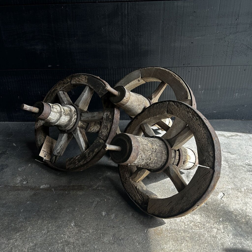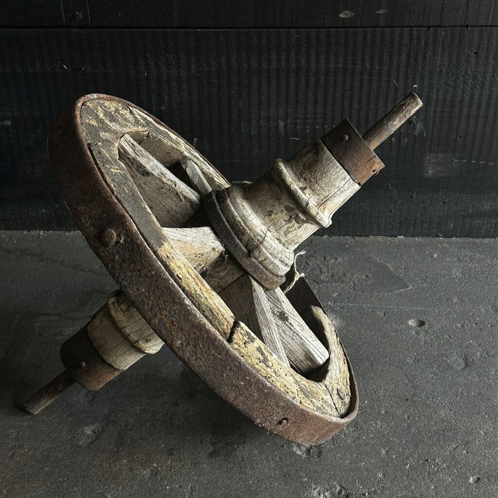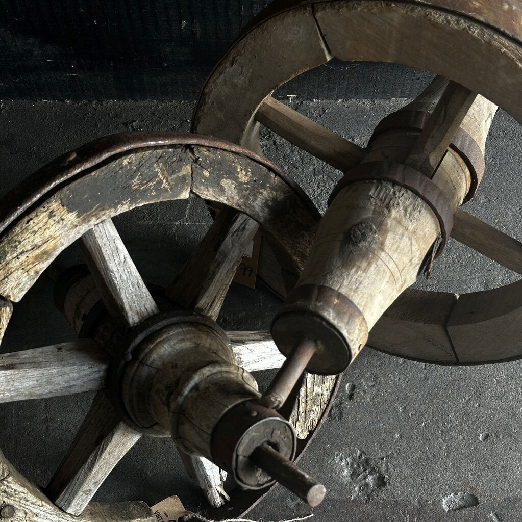 This Wooden & Metal Wheel was handpicked overseas. Each one is authentic and will vary in size, shape, and color.