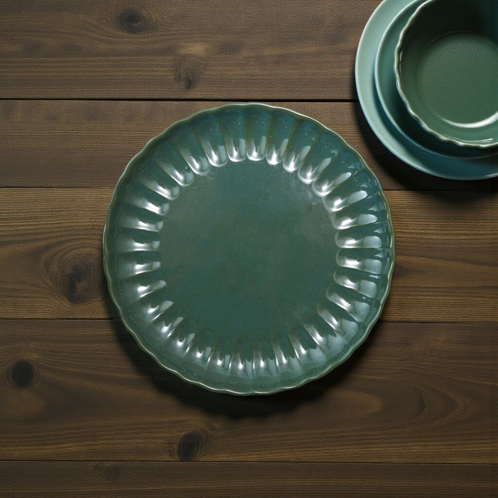 Beautiful Fluted Stoneware Plate- Green