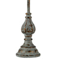 A lamp that brings vintage charm with its beautifully distressed blue and bronze finish. Crafted from resin, its candlestick-style base features classic curves and subtle detailing for a timeless look. A natural linen cylinder shade complements the design, offering a soft, inviting glow.