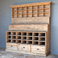 With 21 large cubbies, 21 small cubbies, 2 sets of shelves, and 3 large drawers - this natural display cabinet offers incredible storage and functionality.