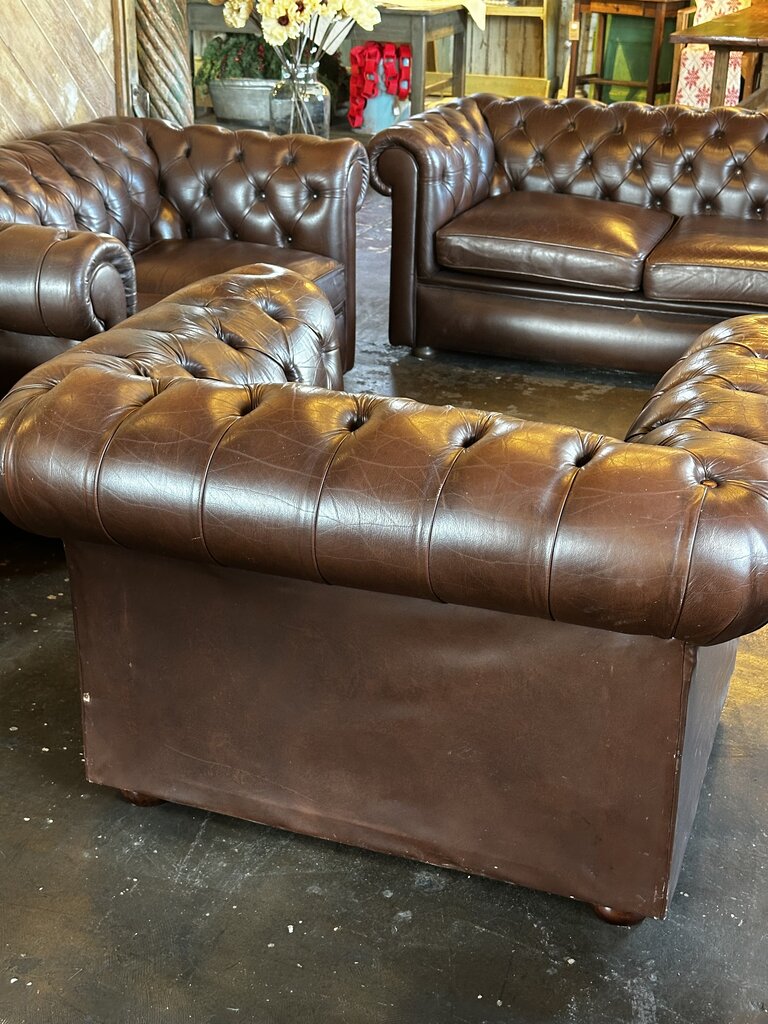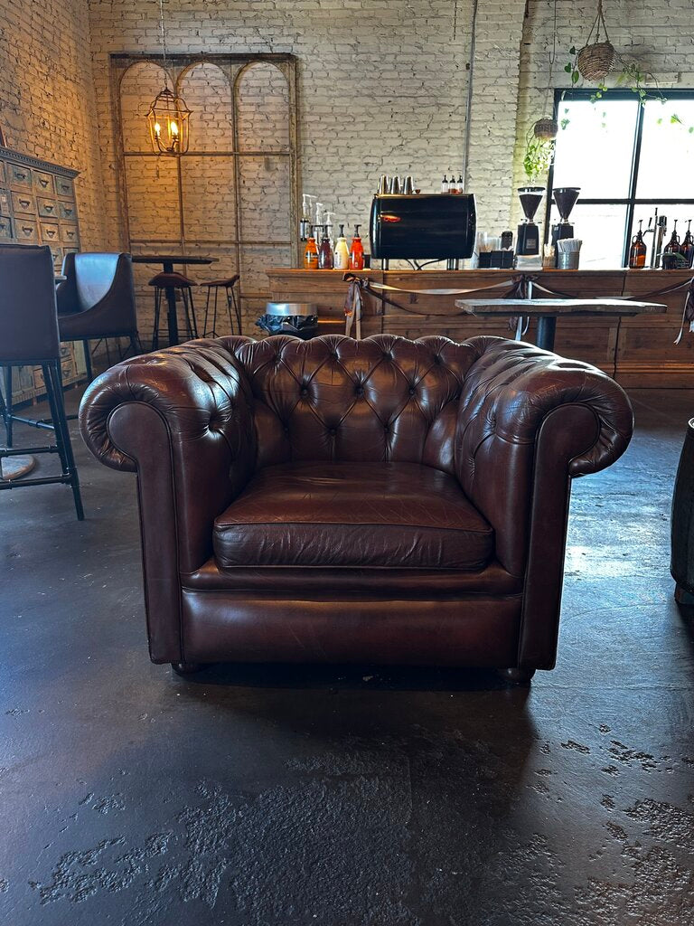 Brown Leather Chesterfield Arm Chair