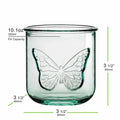 Add a touch of nature-inspired elegance to your table with this 10 oz. recycled glass tumbler, featuring a beautifully embossed butterfly motif on the sides. Crafted from 100% recycled glass, its subtle green tint highlights its eco-friendly origins while the delicate butterfly design adds charm and visual appeal.