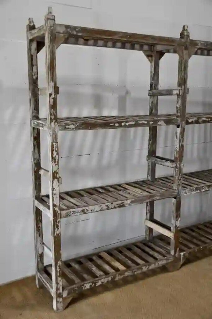 This amazing country store shelf features 4 rows of shelving, perfect for storage and functionality. It is a stunning piece for any space.