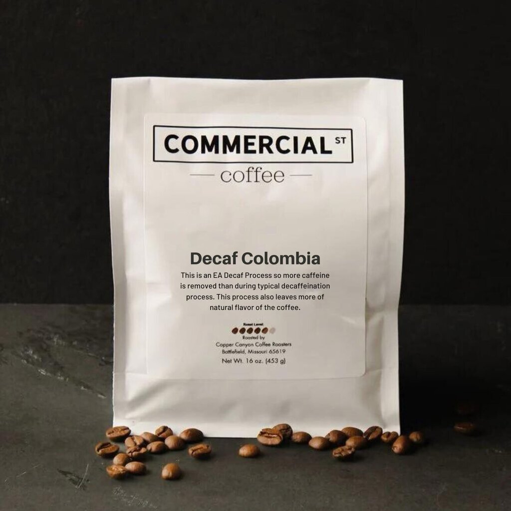 Fresh from Commercial St. Coffee, our Decaf Colombia blend is an EA Decaf process- so more caffeine is removed during typical decaffeination process. This processes also leaves more of natural flavor of the coffee.