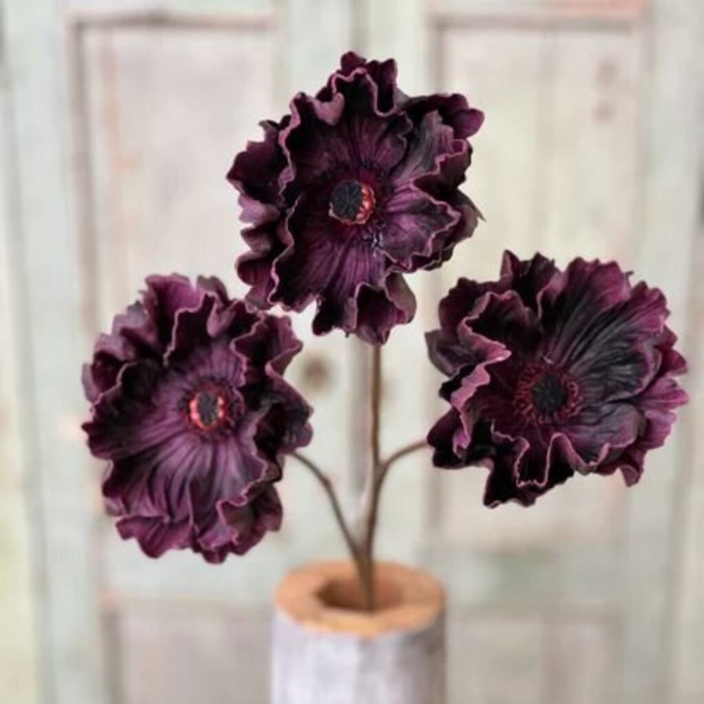 Graceful stems topped with three showy poppy blooms in gorgeous tones make a statement! The addition of an intricately detailed center and real touch-feel make these a compelling floral.