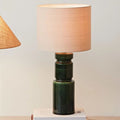 This ceramic table lamp with a natural linen shade in green is a sleek and modern addition to any room. Its smooth, glossy finish reflects light, adding a touch of sophistication. It requires one 4W LED bulb and comes with an inline switch for easy on/off.