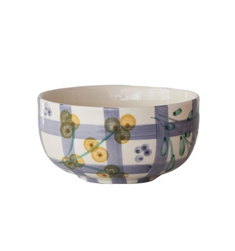 A Gorgeous Hand-Painted Dish featuring lovely florals and grid pattern