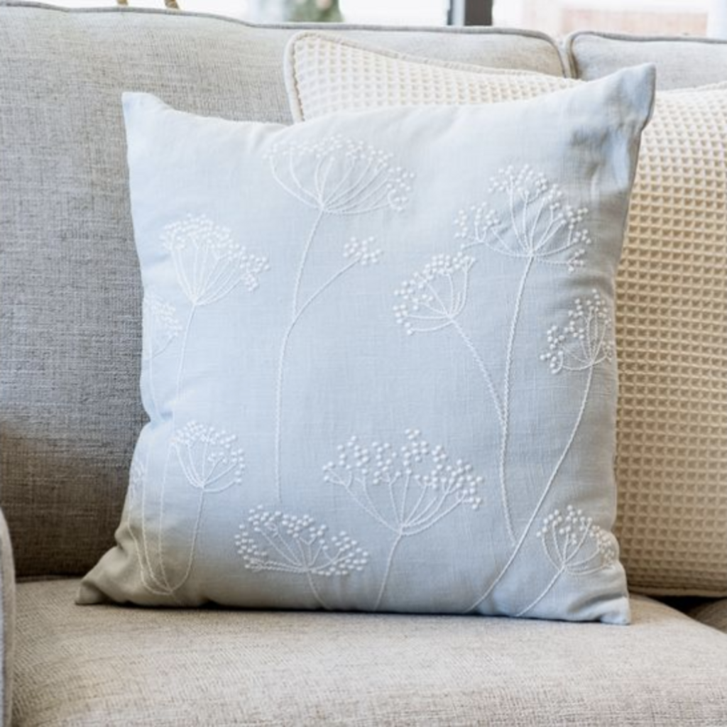 A Pretty 18" Light Blue Queen Anne's Floral Pillow