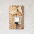 A Beautiful Mang Wood Scalloped Cheese Board with a built in knife!