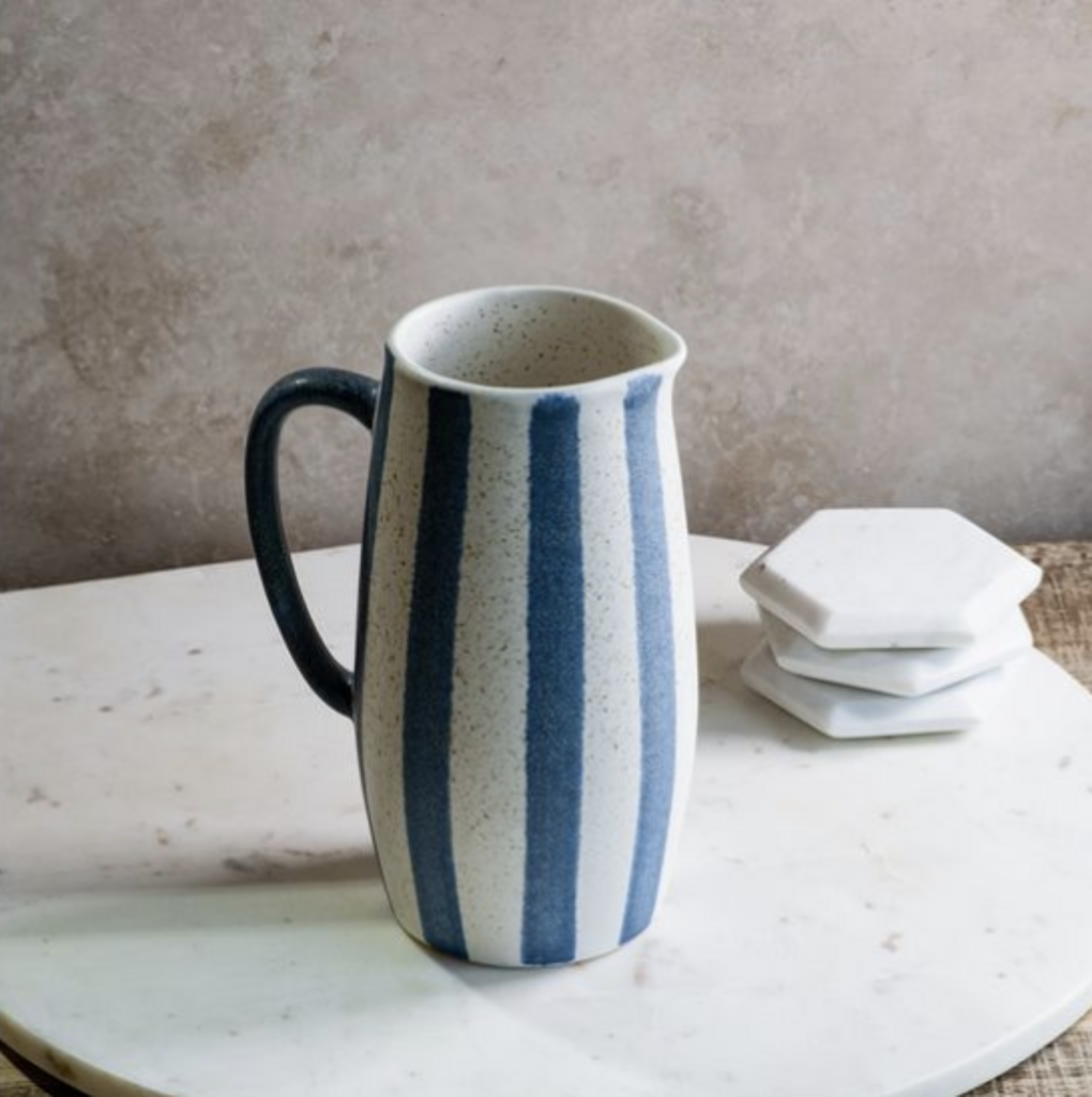 Matte Blue Stripe Ceramic Pitcher