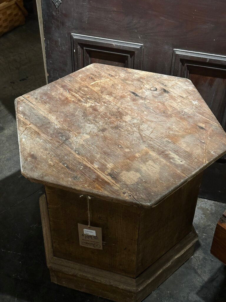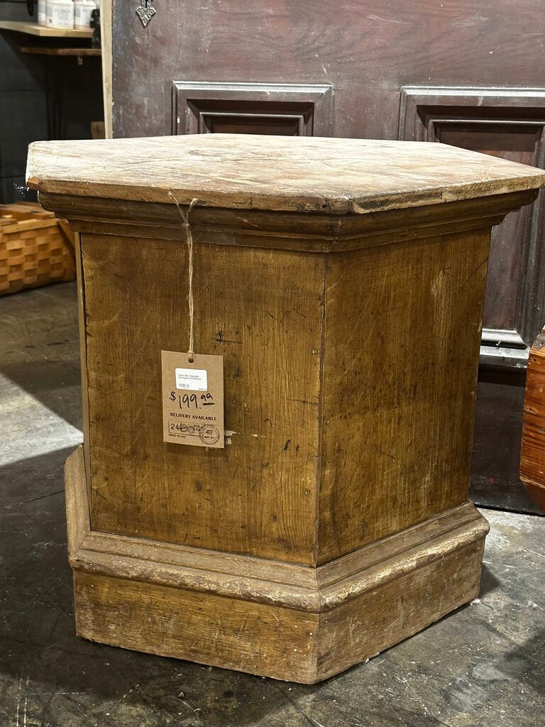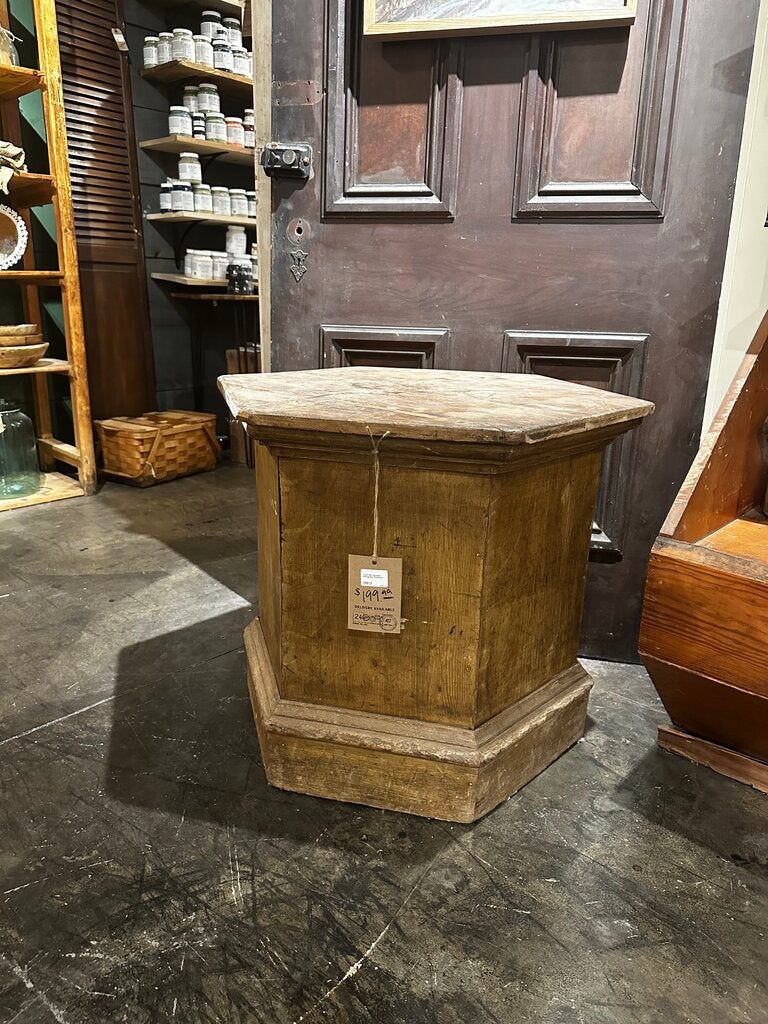 A Cool Old Wood Hexagonal Pedestal. This pedestal would be an amazing plant stand, or side table!