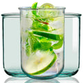 Crafted from 100% recycled glass, it features a subtle green tint that highlights its eco-friendly origins. The smooth, cylindrical shape and rolled rim ensure comfort and durability, making it perfect for serving water, juice, iced beverages, or cocktails.