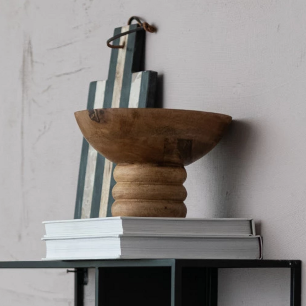 Ribbed Mango Wood Footed Bowl