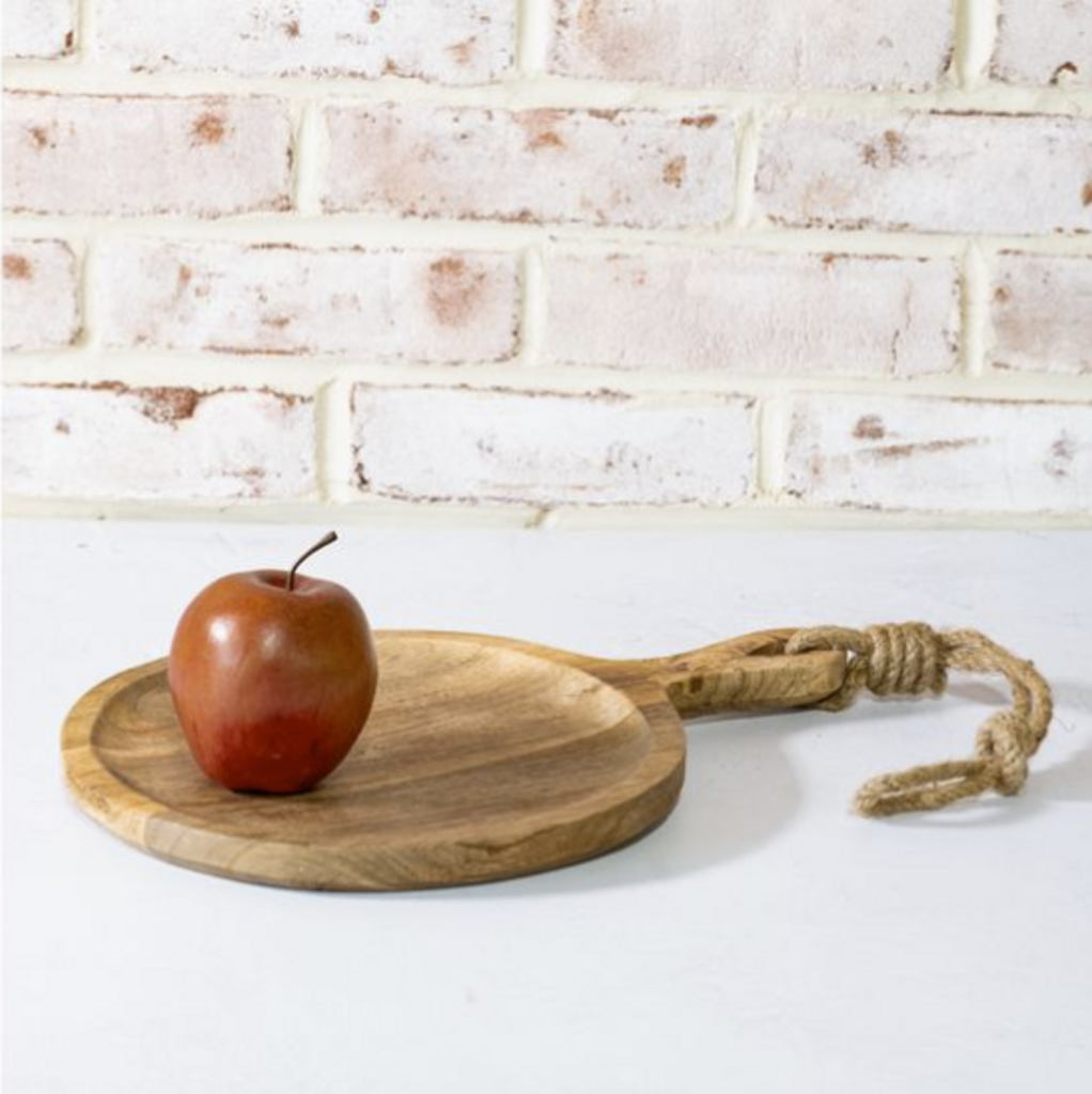 A Gorgeous 14" Round Carved Wood Board with Jute Hanger