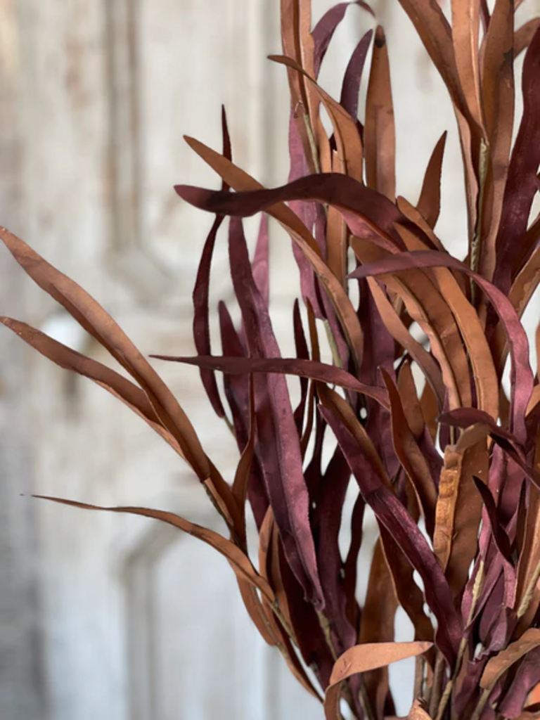 This golden isles bush features an abundance of strap-like leaves in a gorgeous rust shade. Each bundle contains 3 stems and is bound with a rope tie.