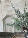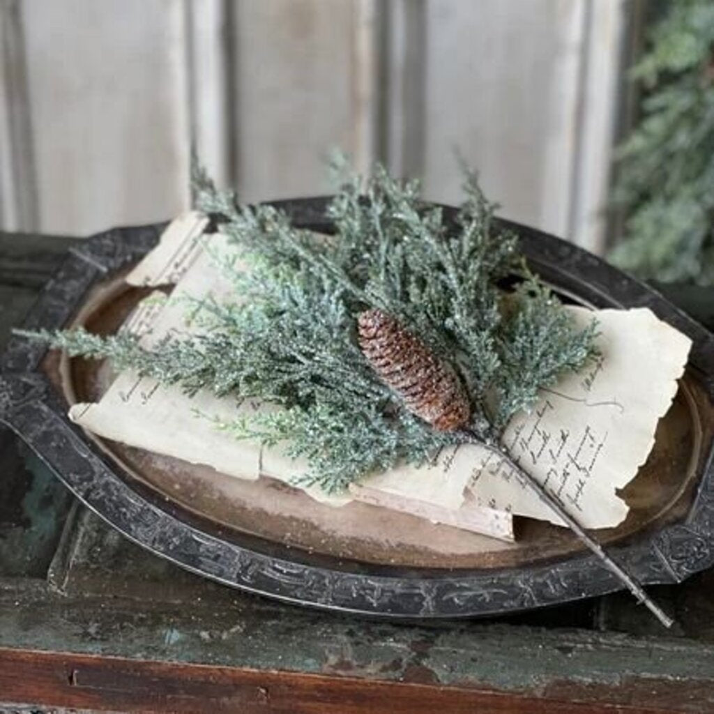 Snowy structural cedar boughs with a glittery sheen are topped with a natural pine cone. Truly a gorgeous collection that is perfect for winter long use!