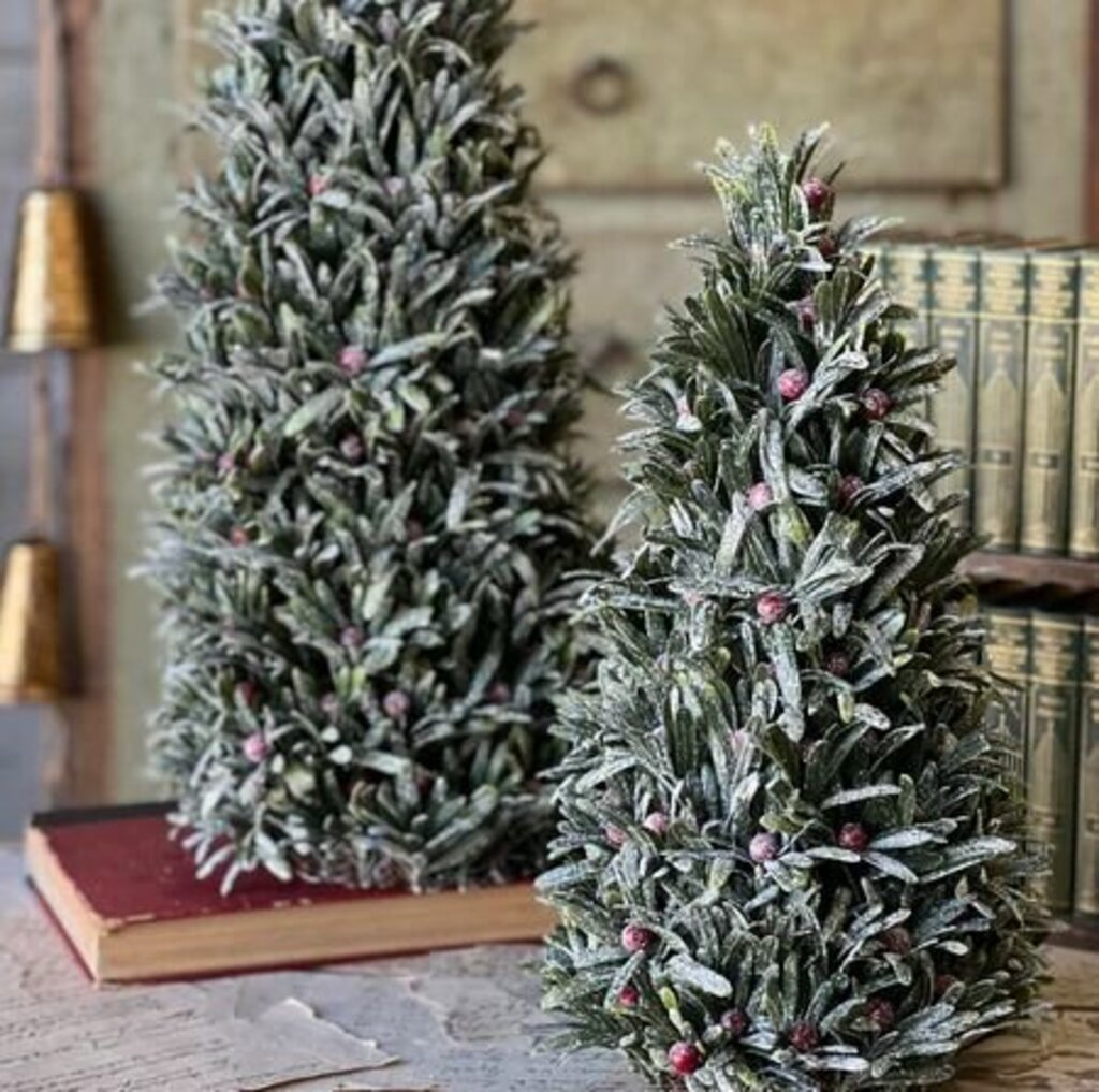 Snowy Newberry Trees make a festive statement while adding an element of height and seasonal charm to your holiday decor. Oblong leaves interspersed with red berries are dashed with a snowy finish.