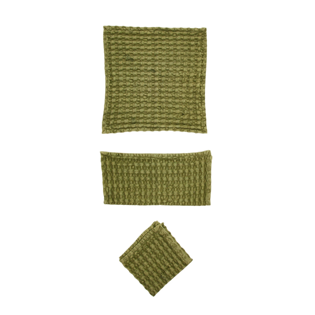 Stonewashed Green Cotton Waffle Weave Dish Cloth