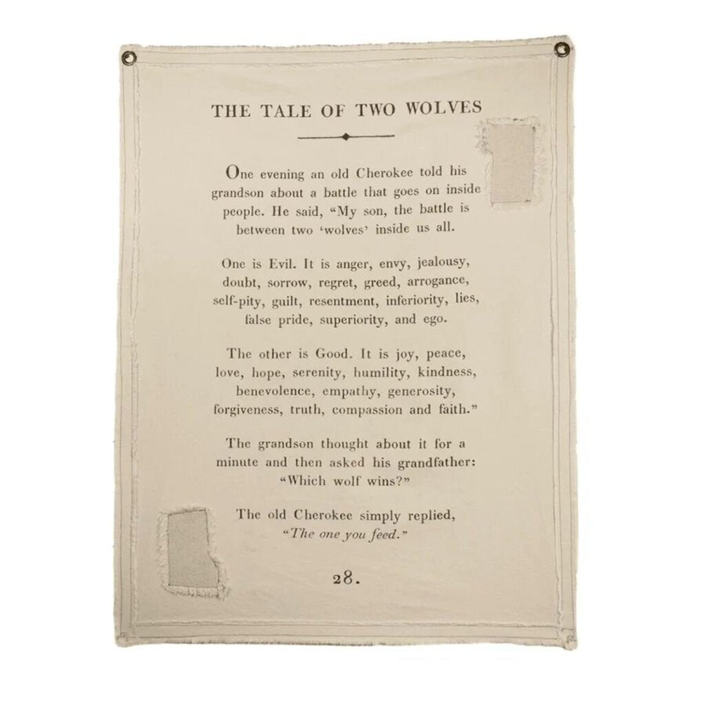 There’s a quiet power in old stories—especially the ones that help us remember who we are and what we’re made of. This canvas wall hanging shares the age-old wisdom of the Tale of Two Wolves, a gentle yet profound reminder that we all hold a choice inside us every day.