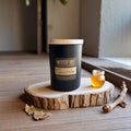 - Materials: Matte Black Glass Jar, Cedar Wood lid, Untreated Cedar Wood Wick