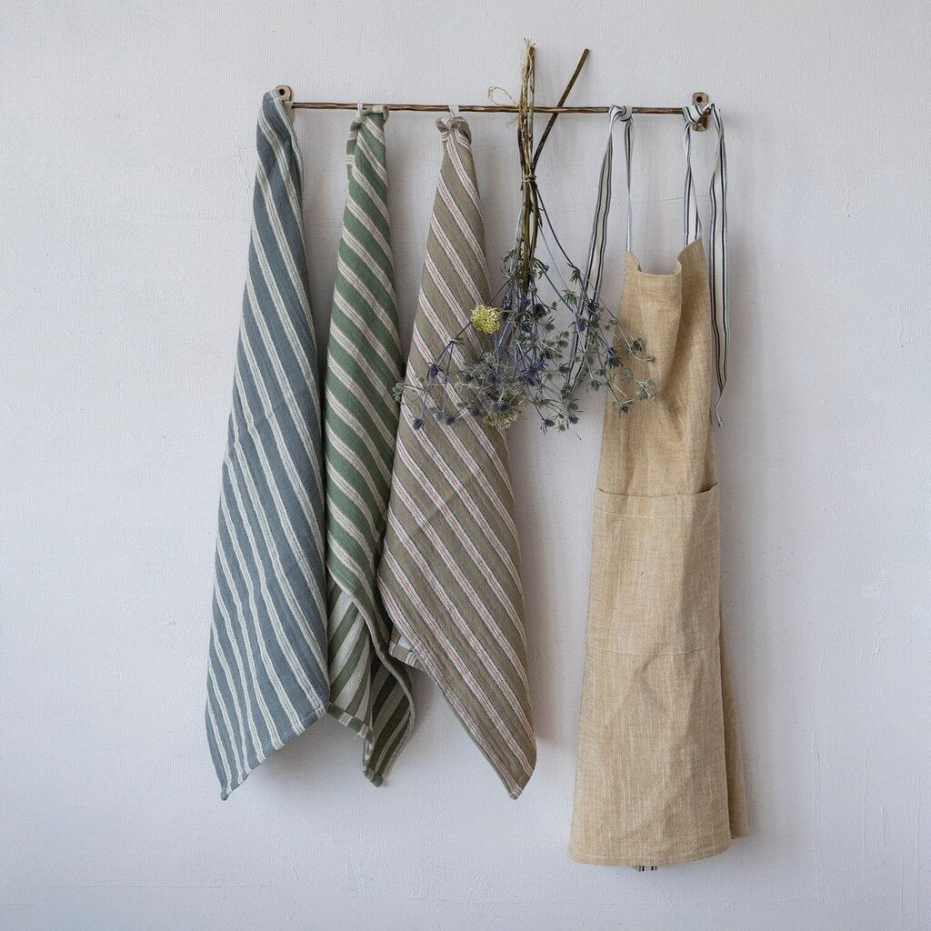A Fun Woven Cotton Apron with Striped Straps and 2 Pockets